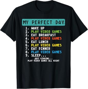 My Perfect Day Play Video Games Funny Gamer Men Boys Kids T-Shirt