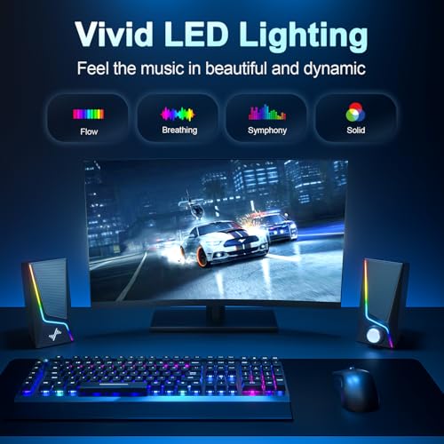 Nylavee Computer Speakers with Subwoofer, 2.1 Hi-Fi PC Speakers System with 6 Lighting Modes, Enhanced Bass, Plug and Play, USB/USB-C Powered and 3.5mm Aux in for Desktop, Monitor, Laptop, Tablet